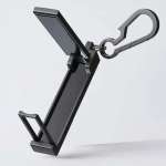本体部分の先にはキーリングが備わり、カギ類を掛けられる仕様。またスマホ・タブレットスタンドの代わりにもなるなど、カバン掛け以外にも便利に使えます。