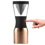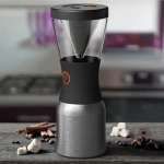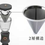 使うときはフィルターを入れた本体をボトルにセットしたら、コーヒー粉を入れて水を注ぎ、あとは12〜18時間ほどかけてじっくりと浸出。浸出を終えたら本体上部の空気孔を開き、ボタンを押して抽出スタート。コーヒーが落ちるステンレスボトルは真空断熱仕様になっているため、外気にほとんど触れることなく抽出できます。