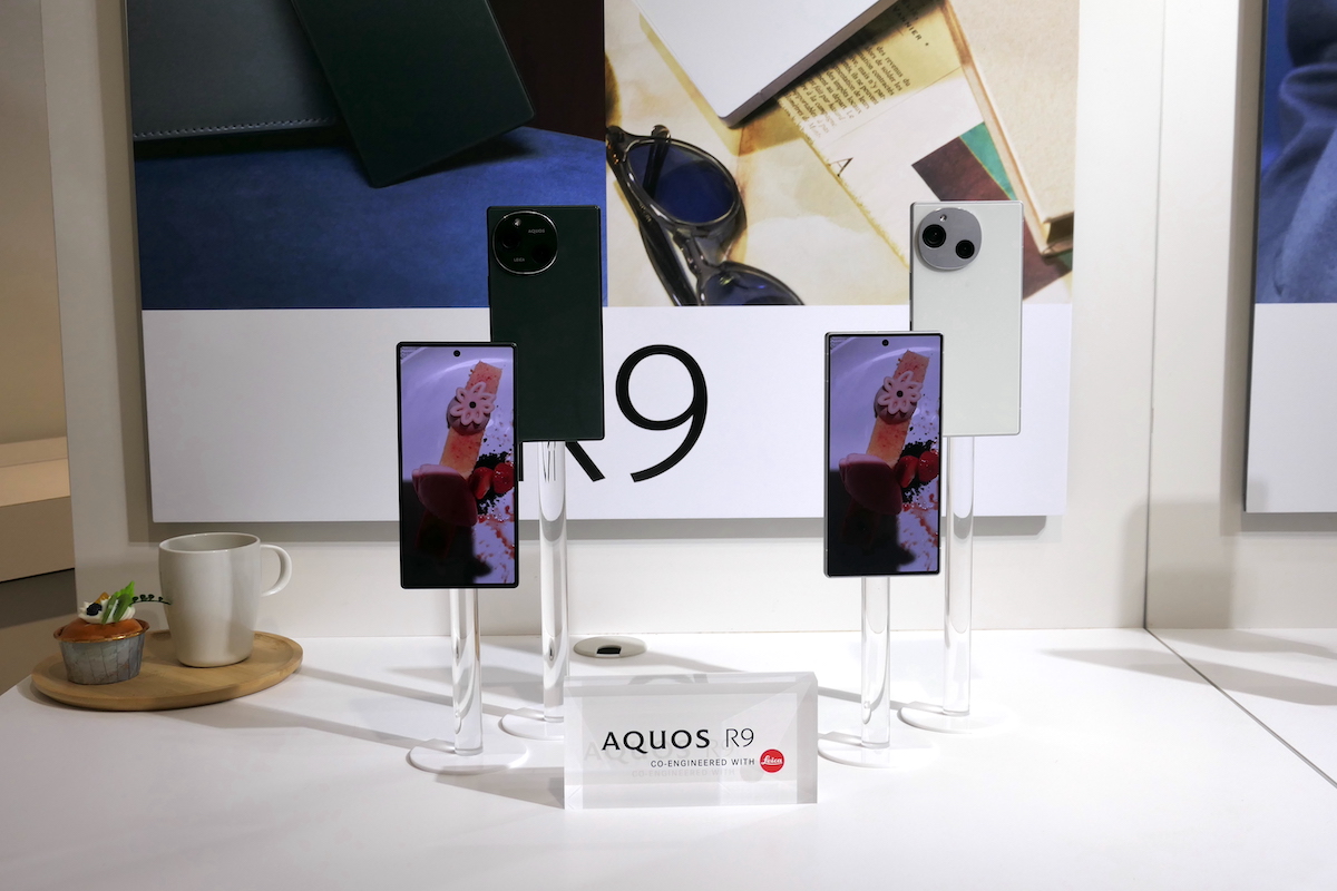▲AQUOS R9のカラバリはグリーンとホワイトの2色。ドコモ、ソフトバンク、シャープ直販に加えて、インドネシア、台湾、シンガポールでも発売される