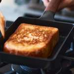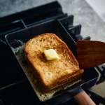 またフライパンにバターを載せ、豊かな香りが広がる焦がしバターが出来上がったところに、厚切り食パンを滑り込ませれば、サクッ・ジュワが同時に味わえる至高のバタートーストが完成。トースターでは味わえない香りと食感をまとった究極の逸品が完成します。
