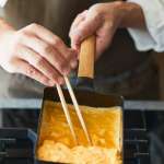 卵の旨みが凝縮された“だし巻き玉子”。職人にしか出せない食感と深い味わいを再現したい。そんな思いを実現させたのが、蓄熱性の高い鋳物と瞬間蒸発ホーローです。鋳物の限界まで底面内側の角を小さくし、垂直に立てた形状によって卵液が広がりやすくなり、だし巻き玉子の要ともいえるカタチもしっかりと作り込めるようになっています。
