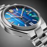 「NJ0151-53L」(6万6000円)はターコイズ一色のソリッドなダイヤルに、インデックスの斜面部分にレインボーカラーを添えた夏らしいモデル。一方「NJ0151-53W」(6万6000円)は、ブルー系グラデーションのストライプに、レッド、グリーン、パープルなどをランダムに散りばめたカラフルなモデル。インデックスの周囲やダイヤル外周のミニッツトラックにマルチカラーをあしらうなど、こちらも細部まで行き届いたこだわりが光ります。