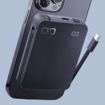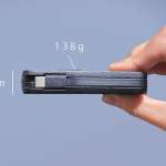 この「MARTCOBY Ex SLIM Qi2&Cable」は、最新ワイヤレス充電規格であるQi2に対応したモバイルバッテリー。本体サイズは65.5×91mmとカード並みの小ささで本体厚はわずか16.2mm、側面は本体直付けの入出力両対応USB-Cケーブルが収納できる構造で、全面に施されたシボ加工も高級感があっていい感じ。