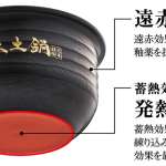 ベースとなる内なべには、三重県の伝統工芸品「四日市萬古焼」を使用。乾燥させてから焼成を三度繰り返すなど、手間ひまをかけて頑丈に焼き締められた土鍋は、強度に加え厚みや大きさなどの寸法精度も高く精巧に仕上げられています。