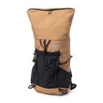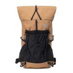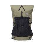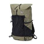 メインの収納口はYKK製防水ファスナーを使用したダブルファスナー仕様のロールトップ式で、クルクルと丸めて水の侵入を防止。丸めずにギリギリまで荷物を入れれば、各ポケット容量を含めて約40Lまで収納力がアップします。
