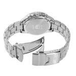 時計ケース(縦48.1×横42.8×厚さ13.1mm)とブレスレットは、素材にサテン仕上げのステンレススチールを採用。明るめの色合いが腕元にすっきりした印象をプラスします。