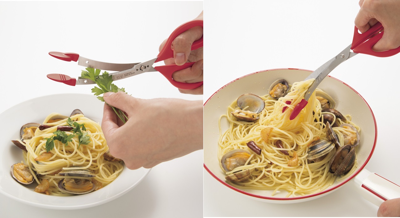 そして食材の封などを切ったり、皿や鍋の中で直接食材を切って調理できたりと、こちらも幅広い用途で大活躍のキッチンバサミ。