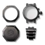 また耐衝撃性と美しさを両立させるため、ケースとベゼルには“マルチガードストラクチャー”を採用。通常は一体成形されることの多いケースとベゼルを、27個のパーツを日本の伝統工法である“木組”さながらの緻密さで組み上げて作ることで、外部からの衝撃を分散・吸収します。