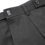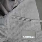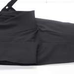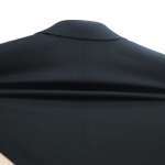 シングル2つボタンとワンタックパンツの同素材のセットアップで、ウール62%、ポリエステル38%に濃染加工を施した、喪服にも最適な素材。高伸縮機能糸TEXBRIDを使った清涼素材を採用することで、従来スーツに比べて約2倍ものストレッチ性を実現しています。