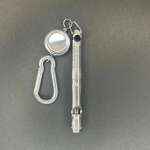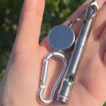 本体の尻部には自動巻き取り式の45cm長のリールワイヤーを内蔵したカラビナ付きパーツが備わっており、ズボンのベルトループやカバンに取り付けやすいのもポイントです。