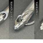 小さなボディに備わる機能は、メインであるホイッスルとガラスブレイカー、メモホルダー、ミニカッターの4種類。