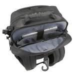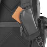 メイン収納は内部にポケットのないシンプルな構造で、さまざまなアイテムをざっくり放り込める仕様。そして背面側には、ノートPCやタブレットの収納に適したストッパー付きのスリーブや、雑誌や書類などを折らずに入れられるスペース、2つのフリーポケットを搭載する収納部を備えています。