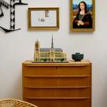 何と言っても、レゴ ブロックの組み立てを通して、この数百年にわたるノートルダム大聖堂の変遷を年代順に追体験できるところが大きな魅力です。大聖堂の後ろのカーブした建物や鐘楼など、ディティールもリアル。さらに、完成後、内部を鑑賞したいときは屋根を取り外すことも可能。ゴシック建築に特徴的な円形のステンドグラスの窓(バラ窓)や、内部の柱、アーチなども確認できます。