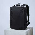 メイン収納部は3辺が大きくジッパーで開くつくりで、13インチのノートPCを収納できるポケットや、ペットボトルや折りたたみ傘などを収納できるポケットを搭載しています。ブランドロゴも本体と同色の黒で統一し、シックな印象に仕上げています。