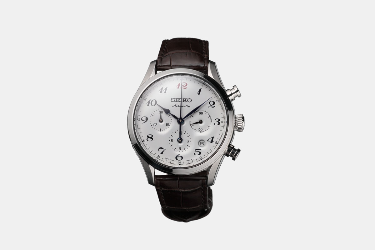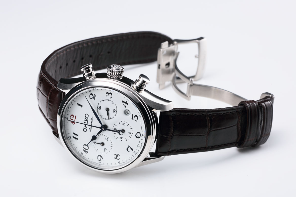 そんな琺瑯ダイヤルに、セイコーが培ってきた技術を注ぎ込んだ自動巻メカニカルクロノグラフのムーブメント<キャリバー8R48>が組み込まれる。また秒針、分針、時針を瞬時に同時ゼロリセットを行うために、一体型三叉ハンマーが採用され、高い耐久性やメンテナンス性も実現してる。