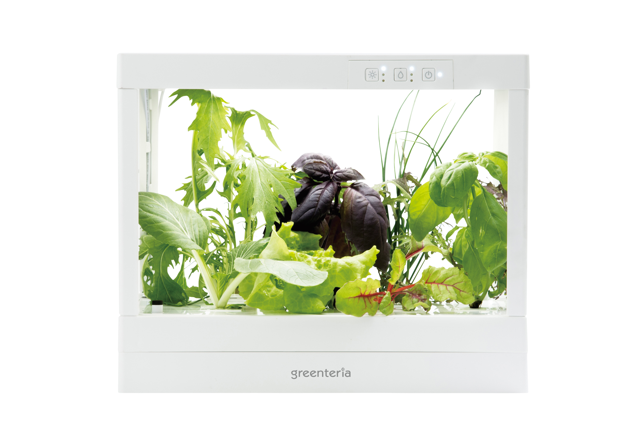 未来の産業技術としても注目を集めている「LED栽培」。この技術を採用した「LEDプランター グリンテリア(greenteria)」シリーズは、植物が育ちやすいように調整された白色LEDと、 昼・夜を作り出すタイマー機能により、日の当たらない屋内でも簡単にグリーンを栽培することができるキットです。
