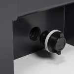 扉を開ける際には、ポールを回すだけで簡単にロックが解除できます。閉める際にもポールを押し込めばロック完了。また、簡単に水抜きができるよう、サイドには水栓が備えられています。