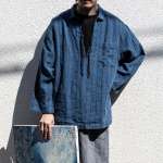 「インディゴストライプリネンセーラースモックシャツ」では、柔らかいインディゴリネンを採用し、クラシックなストライプ柄を施したオールド顔の1枚。ファブリックにオゾン脱色加工が施されており、ヴィンテージ感のある表情も魅力です。