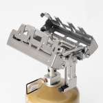 また、器具栓や混合管がバーナーヘッドの中にすっぽりと納まる設計なので、コンパクトな長方形に折りたたむことができ、持ち運びにも便利。荷物をなるべく小さくしたいソロキャンプや、テント泊登山の際にも活躍してくれます。