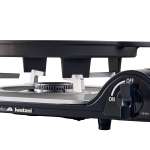 フチがせり上がっている受け皿形状なので、焼いた際に出る汁がこぼれてしまう心配はナシ。底面に窪みが入った脚が備わっており、イワタニ製のカセットこんろの五徳にピッタリとハマってズレもなく安心。脚に高さがあるので輻射熱も問題なし。また鉄板上でナイフを使ってカットができるので、自宅でも本格的な鉄板焼の雰囲気を楽しめます。