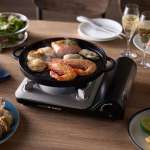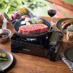 鋳鉄の特性である蓄熱性と熱伝導率の高さにより、卓上こんろでもステーキ肉やハンバーグのようなお肉から海鮮焼きなども香ばしく、ジューシーに焼き上げられます。火から下ろしても高温状態をしばらく維持するため料理が冷めにくく、また余熱を利用した調理も可能です。