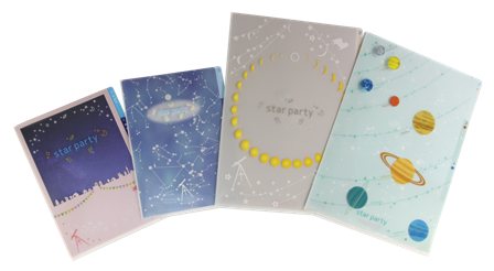 A4:月齢柄・惑星柄 (562円)/ A5:星座柄・スターパーティ柄(432円)
