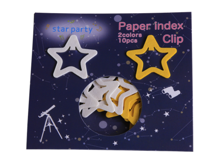 摩擦や衝撃に強く、インテリア材料としても用いられる"ファイバー紙"を使用。本や手帳のインデックスとしてはもちろん、書類約10枚が留められます。クリップの台紙の裏には、土星や星に関するコラム付き。
