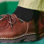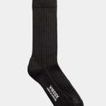 ソックスの上部にはゴムがしっかりと入れられているので、ずれ落ちにくいのもうれしいポイント。ピンとのばしてキレイめにも、ちょっとたるませてカジュアルにも着用できます。革靴はもちろん、あえてスニーカーに合わせてみるのもおしゃれ!