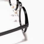 また、レンズの幅を小さく、フレームとテンプルを繋ぐヨロイ側のリムに厚みを持たせ、さらにレンズの厚みが目立たない部分は薄厚にしているのも見逃せないポイント。
