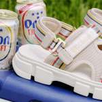 「CHILL OUT SF for Orion Beer」では、甲を覆うようなバタフライ形状のアッパーに柔らかな足当たりのネオプレン素材と通気性に優れたメッシュ素材を採用し、その上に滑らかなツヤのあるシートベルトタイプのウェビングテープを搭載しています。