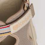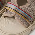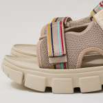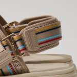 特徴的なのがこのウェビングテープ。トープを基調としたサンダルに、レッドやネイビー、ライトブルー、イエローなどのカラーで施したストライプは、「オリオン ザ・ドラフト」のアイコニックなカラーリングを表現。