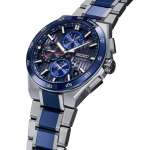 またダイヤル全面に大胆にあしらった、ストライプの型打ちパターンも大きな特徴のひとつ。動きのあるダイヤルデザインが、ブレスレットの中央に走るブルーセラミックのラインと連動。いきいきとした躍動感を感じさせるスポーティな仕上がりになっています。