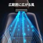 側面に配された吹き出し口から出る風は自然風、快適風、強力風の3種類。120度の広角で首元から肩、背中にかけて風を送り出し、ボタン操作で随時切り替えが可能です。運転中でも駆動音が気にならない静音機能も有しています。