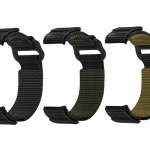 ウォッチケースへの取付はベルクロ式(面ファスナー)となっており、締め具合の調節はもちろんのこと、着脱もイージー。バンドの端に湿気や摩耗に強いPVC製のタグが配置されるなど、細かいディテールにもこだわった仕様です。サイズはS/Mサイズ(長さ145~165mm・幅25mm)とM/Lサイズ(同165~205mm・幅25mm)の2種類。カラーはウォッチケースと同色のブラック、カーキ、コヨーテの3色が用意されています。