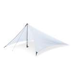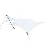 302×294cmの変形ヘキサ型で、素材には同ブランドの人気ソロテント「El Chalten ZEROBONE(エル チャルテン ゼロボーン)」のフライ部分などに使われている“15D N/R SILICONE/PU COATED”を採用。耐水圧1500mmと十分な防水性能を備えているのも頼もしい。また負荷のかかるポイントには“ダイニーマ・グリッドストップ”生地の補強が入っています。