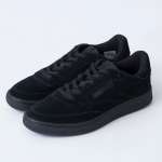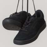 「Reebok for RHC CLUB C 85 VINTAGE」では、アッパーに配されていたリーボックのブランドロゴをあえてカット。生地には上品なスウェードレザーを使用し、カラーをオールブラックに統一することで、よりシンプルでモダンなシューズに仕上げています。