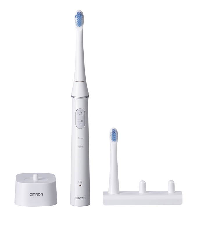 ブラッシングモードの種類と、付属の替えブラシの数をしぼった「オムロン 音波式電動歯ブラシ HT-B313」も同時発売となっています。