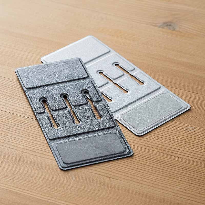 ホルダーは、マグネット内蔵でスチールデスクなどにはそのまま設置可能。貼り直し可能な粘着シートも付属しているので、金属以外のデスクにももちろん使用できます。粘着シートの粘着力が落ちた場合は、水で洗えば粘着力が復活するのでご安心を。