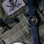 “Back To The Blue”と名付けられた最新モデルは、陸上や砂漠での任務が中心だったネイビーシールズが、近年、原点である海上任務に戻りつつあるという変遷を祝して製作。夜明け前の海のような深いネイビーブルーと煌びやかなゴールドが、新たな時代の幕開けを感じさせます。