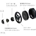 左右のスピーカーには、伸びのある高域を再生するφ12mmツイータードライバーと、低域を担うφ35mmウーファードライバーを搭載。