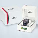 ベースモデルとして採用されているのは今年6月に発売されたばかりの「EFSーS640」、リアルモータースポーツをコンセプトに、サスペンションアームを模したカーボンファイバー強化樹脂ケースやカーボンダイアルを採用したソーラークロノグラフです。