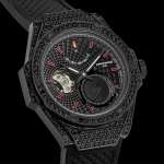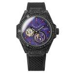 ウォッチスペックは両モデル共通。時計ケースはステンレススチール製で、ケースサイズは44mm径。表面にセットされた236石のブラッククリスタルガラスが唯一無二の存在感を演出します。