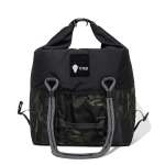 一見トートバッグのように思えるかわいいデザインも魅力的。持ち手には10mm幅のロープハンドルが配されており、肩掛けもできる長さに設計されています。フロントとバックパネルにはサイドハンドルも搭載しているほか、ショルダーストラップもついているので、3WAYで使えるバッグとなっています。