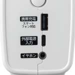 被災時にまず重要なのは情報収集。そこで欠かせないのがスマートフォンや携帯電話。ただ、スマホはバッテリーが切れたら使えません。「多機能型防災クロック」は、内蔵バッテリーに加えて単3乾電池も使用可能。さらに、スマホへの給電もできるようになっています。