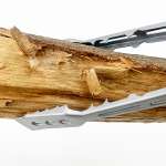 もちろんこだわったのは持ち運びのしやすさだけではありません。クワガタのアゴをイメージしたというアームの先端には上下に牙のようなギザギザを装備、この牙の先端が対象物にしっかり食い込むことで、太い薪や枝も軽く握るだけで簡単に挟み込めるようになっています。