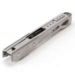 素材はオールステンレス、かつ折りたたみギミックを備えながらも、本体重量は350gと意外なほど軽量。表面をブラスト加工した重厚なルックスと手に馴染む感触が所有欲を満たします。
