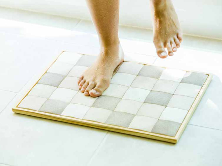 日本エムテクスが開発した「エッグタイル バスマット UFUUFU(ウフウフ)」(1万1880円)は、卵の殻をリユースした“エッグタイル”を使ったユニークな商品。エコなだけでなくなかなか機能的なのです。