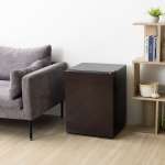 扉は落ち着いた色味のダークブラウンで、庫内はブラックと高級感のあるデザイン。部屋の中はもちろん、寝室に置いても違和感なくマッチします。