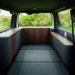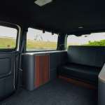 そして、後方に設置するシングルタイプの「ソファーベッド」のサイズはW958×D666×H810mm(ベッド時はW958×D1826×H650mm)。安全基準上、乗車中の座席として使用することはできませんが、停車時はゆったりくつろぐことができます。背もたれ部のクッションを外せばベッドとして使えるので、車中泊にはうってつけです。