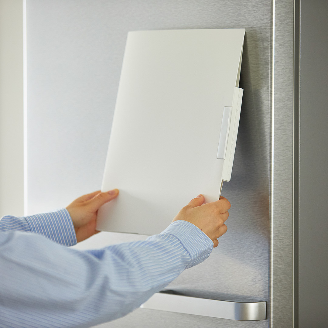 冷蔵庫の扉は、ハガキやレシートなど、細々した無くしたくないモノを貼っておくのに便利な場所。でも、あまり活用しすぎるとせっかくの美しいインテリアをごちゃついた雰囲気にしてしまいますよね。